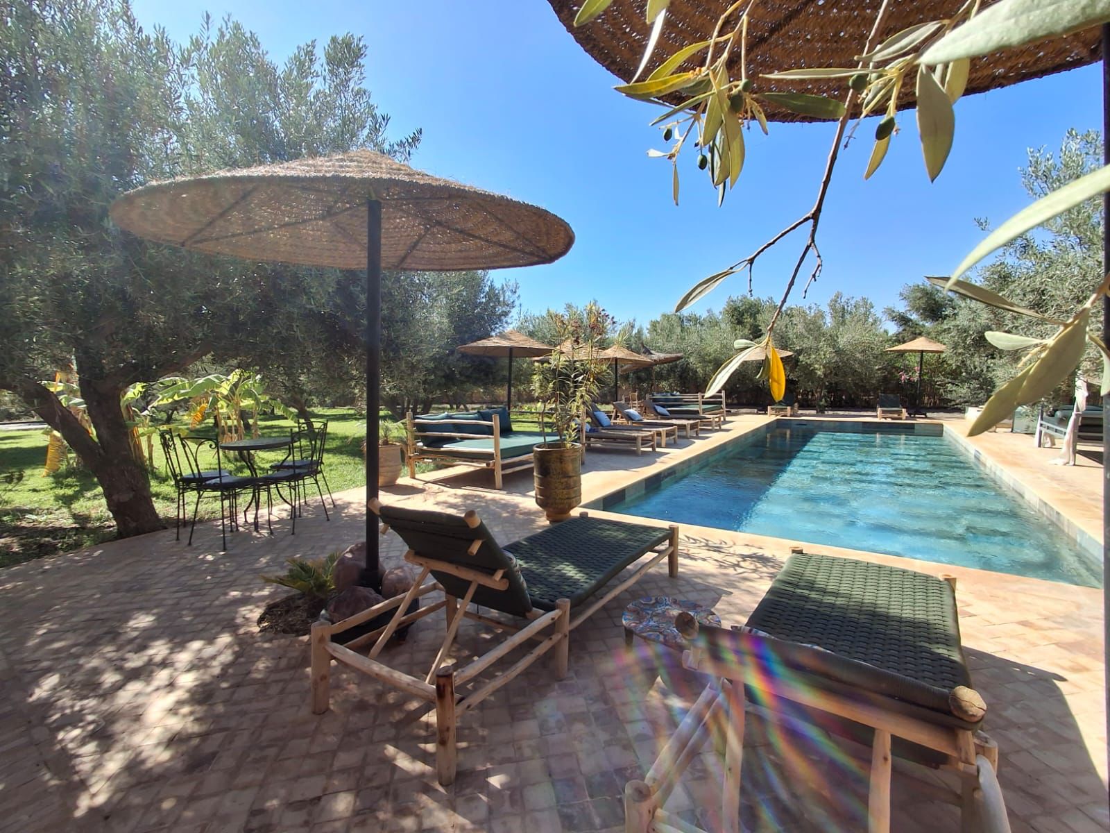 La villa est composée d’un spacieux séjour/salle à manger ouvert sur le jardin, des terrasses ombragées ainsi que de la piscine (chauffée) de 4m sur 10m ou vous pourrez profiter du climat de Marrakech tout au long de l’année !