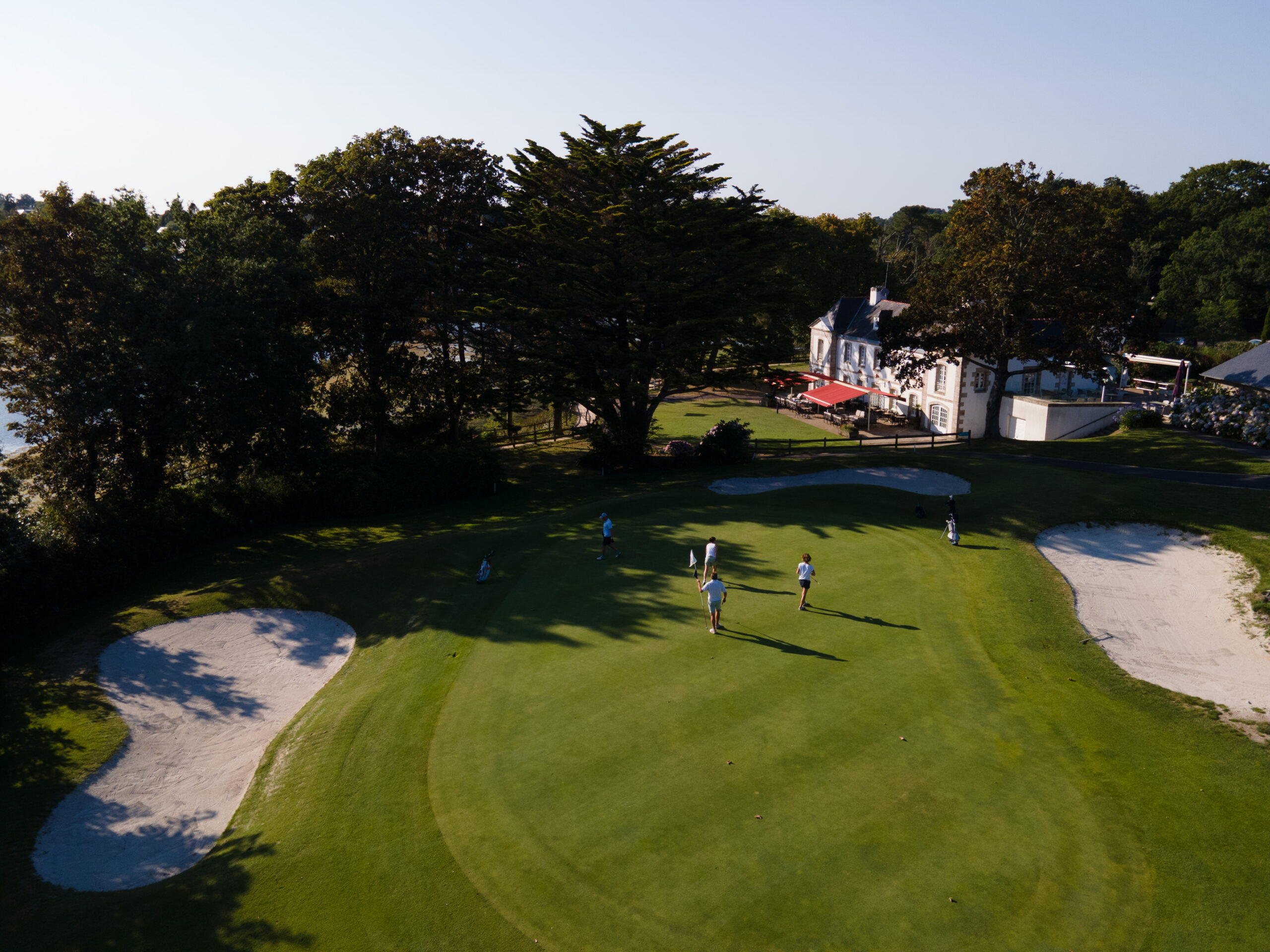 Notre club house, niché dans un manoir breton du XVIIIème siècle, ouvert à tous, vous accueille pour un verre entre amis, un déjeuner en terrasse ou lors de vos séminaires dans l’une de nos salles privatisables.